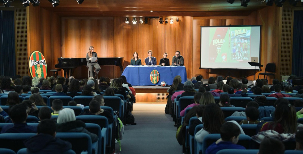 La sinergia tra sport e cultura, nello specifico tra calcio e letteratura, riesce a veicolare valori sociali basilari come empatia, inclusione e drastico rifiuto del bullismo e di qualsiasi forma di discriminazione. In questa ottica appare fondamentale il ruolo del calcio femminile. Pertanto salutiamo con autentico entusiasmo il progetto editoriale varato da Ternana Women, poiché valorizza il ruolo dell’attività sportiva come agenzia formativa privilegiata per le nuove generazioni, accanto a famiglia e scuola”. Davvero significativo l’intervento di Laura Tinari, presidente Divisione serie B femminile, durante la presentazione del libro illustrato “Hola and the big dream”, svoltasi a Palazzo Gazzoli di fronte a circa 320 alunni delle scuole elementari. La pubblicazione, distribuita gratuitamente da Ternana Women, senza scopo di lucro e con finalità esclusivamente educative, nasce in collaborazione con “Almond entertainment and sport” e annovera il patrocinio del comune di Terni e quello gratuito di divisione F.I.G.C. serie B femminile. La firma è quella prestigiosa di Philip Osbourne, scrittore di best-sellers internazionali come “Il diario di un nerd”, venduto in 48 nazioni. Creazione grafica dei personaggi, cover e props sono della grafica ternana Roberta Procacci. Presentazione snodatasi attraverso la brillante conduzione sul palco di Martina Santoro, difensore della Ternana Women. Presenti Paolo Tagliavento (amministratore delegato del club), Isabella Cardone (direttore generale), Deborah Salvatori Rinaldi (responsabile area comunicazione), mister Fabio Melillo, staff tecnico e squadra, capitanata da Federica Di Criscio. Presenti Viviana Altamura (assessore cultura, istruzione e welfare), Marco Schenardi (assessore sport), Sara Francescangeli (presidente consiglio comunale), Fabio Moscatelli (delegato provinciale C.O.N.I.), Roberta Procacci e Dario Gulli (direttore creativo di “Almond Entertainment and Sport”). In platea Giuseppe D’Aniello (direttore operativo della Ternana Calcio).